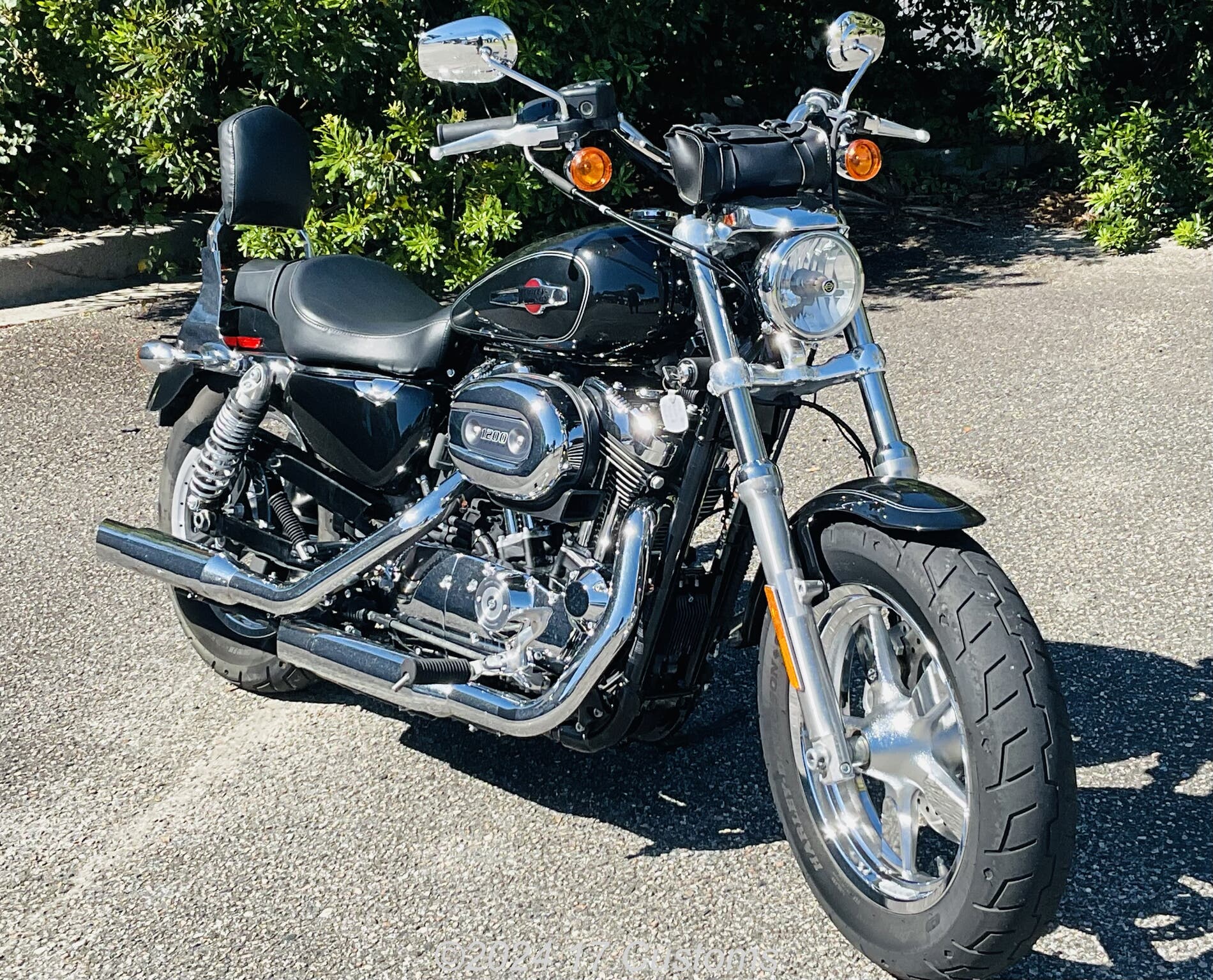 Very nice Sportster 1200 Custom with just 7K miles on it, handlebar pouch, quick release backrest, forward controls, chrome mag wheels, 1200cc engine, 5 speed transmission, custom slip on pipes, runs and rides great!